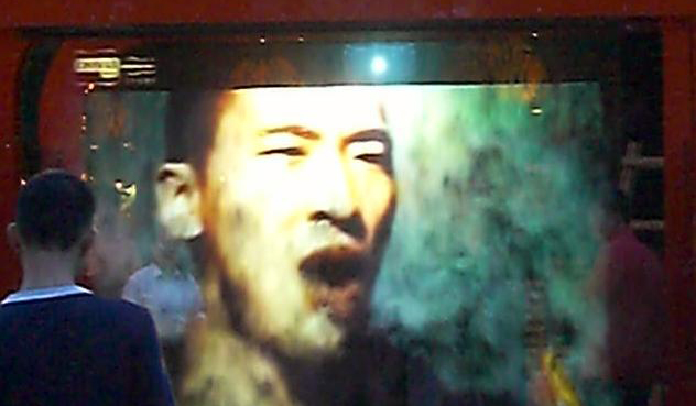 觀眾看到墻面上多個(gè)顯示設(shè)備中,每個(gè)顯示畫面中都有人物的視頻靜止影像。每臺(tái)電視下都有一個(gè)控制按鈕(可以是自動(dòng)感應(yīng)器),當(dāng)觀眾按到其中一個(gè)時(shí)(當(dāng)自動(dòng)感應(yīng)器撲捉有人接近 ……